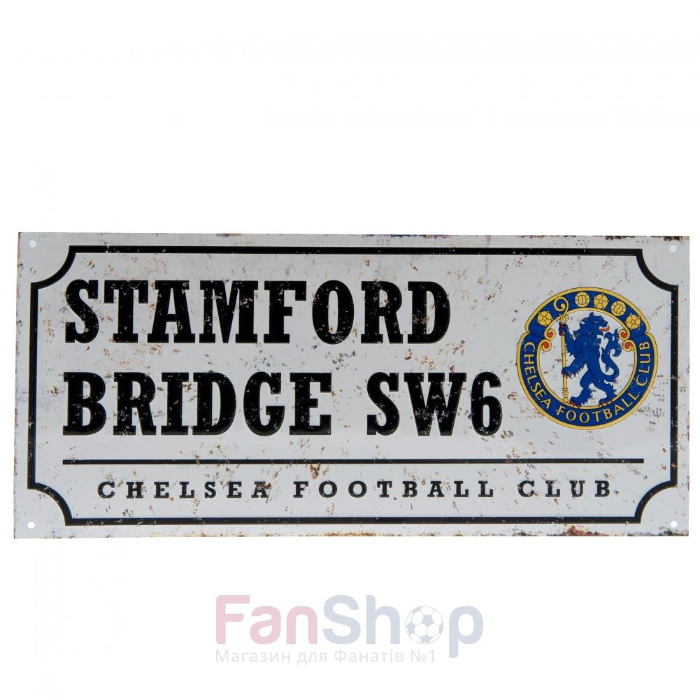 Уличная металлическая табличка в ретро стиле с реквизитами клубного стадиона ФК Челси