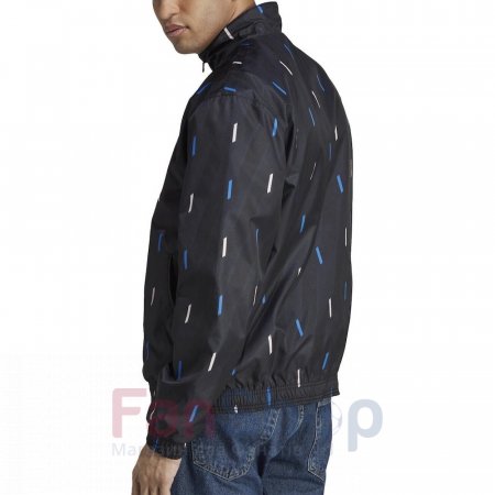 Оригинальная двухсторонняя ветровка adidas с символикой футбольного клуба Манчестер Юнайтед Модель классического кроя с воротником-стойка, застегивается на полной молнии Боковые карманы на молнии; эластичные манжеты на рукавах и пояснице Эмблема клуба и логотип производителя вышиты Материал: 100% переработанный полиэстер