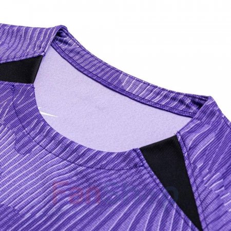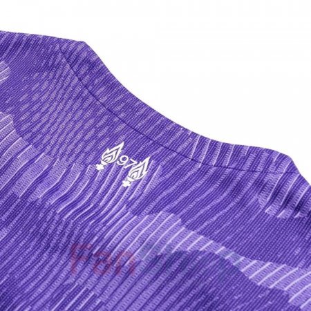 Оригинальная футболка третьего комплекта формы ФК Ливерпуль спроектирована компанией nike на сезон 2023-24 Модель прямого кроя с округлым воротником выполнена в фиолетовом цвете с волнистым узором и черными вставками На задней части воротника вышит вечный огонь с цифрами 97, в память о трагических событиях на Хилсборо Произведена с легкой и дышащей ткани Nike Breathe по технологии Dri-Fit для оптимальной вентиляции На груди вышита эмблема клуба и лого производителя, логотип спонсора - термопринт Материал: 100% полиэстер(машинная стирка), ткань не линяет и не деформируется во время стирки