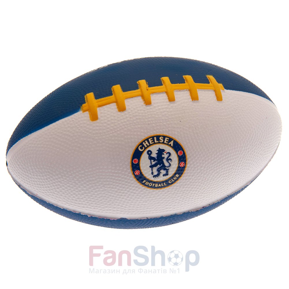 Оригинальный мини-мяч для американского футбола украшен символикой футбольного клуба Челси Мягкая поулеретановая текстура Размеры: 15cm x 9cm x 9cm |