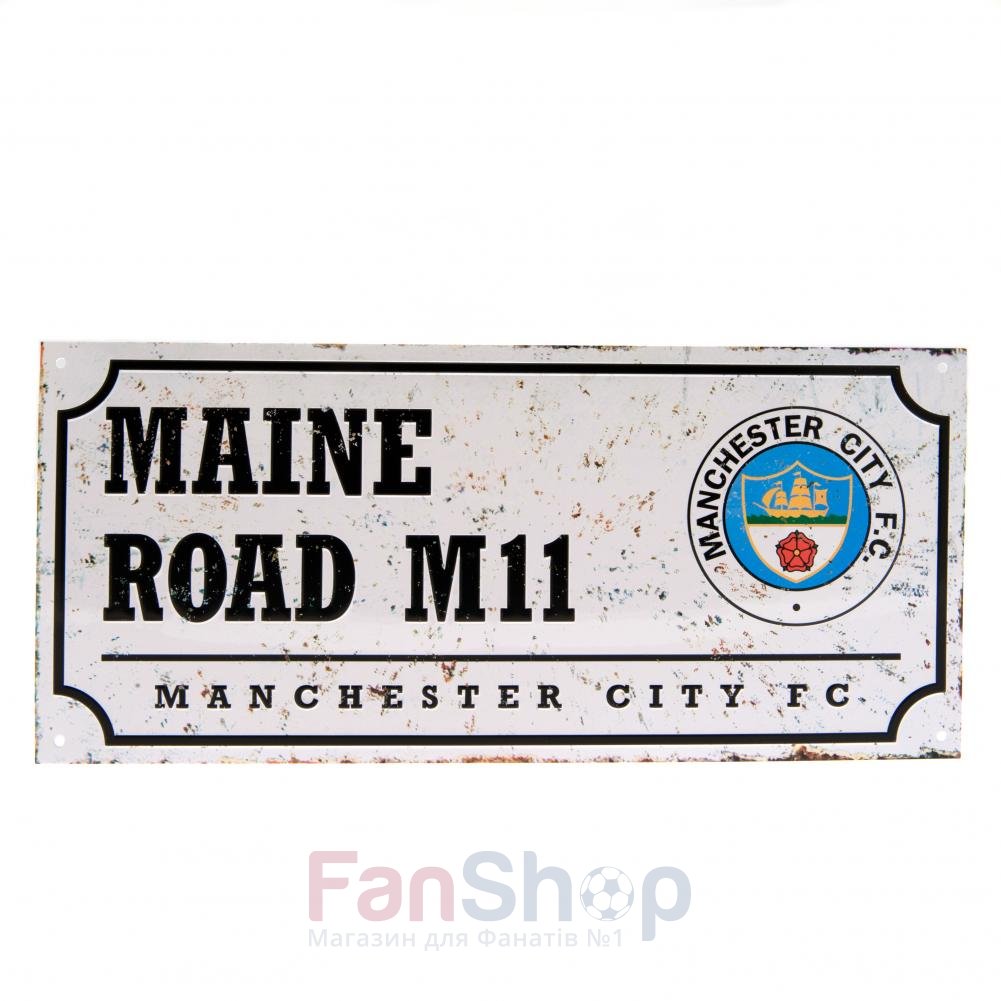 Уличная металлическая табличка в ретро стиле с реквизитами клубного стадиона ФК Манчестер Сити