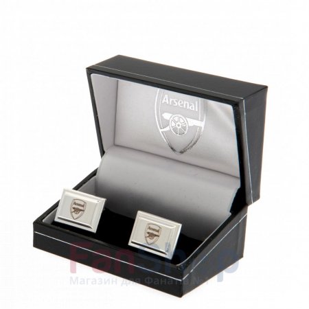Посеребренные прямоугольные запонки с выгравированным логотипом клуба Арсенал
