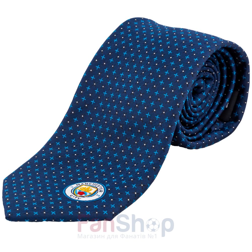 Оригинальный темно-синий галстук с узором и эмблемой футбольного клуба Манчестер Сити