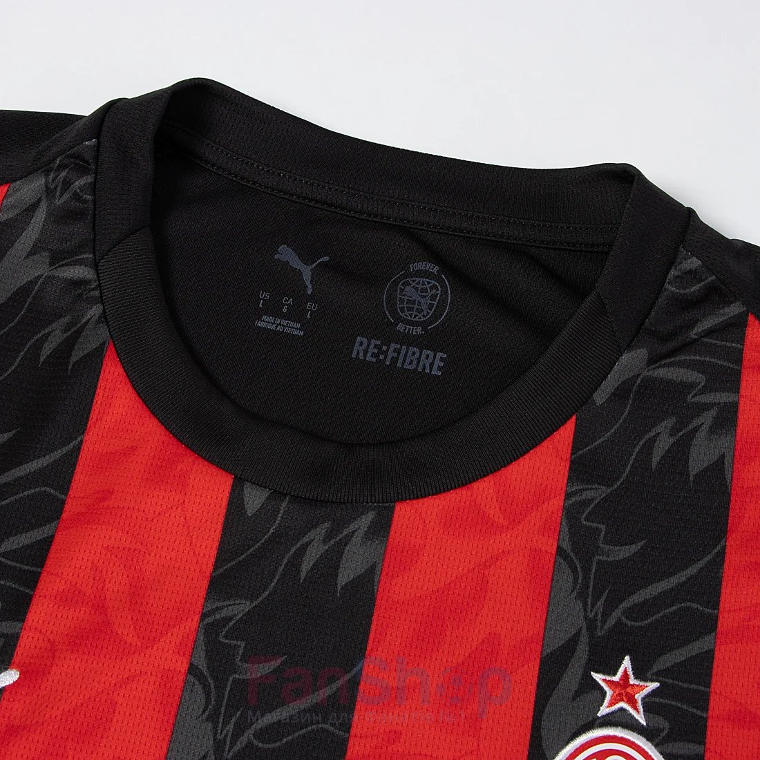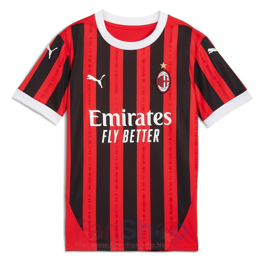 Оригинальная детская футболка основного комплекта формы ФК Милан разработана компанией Puma на сезон 2025-26