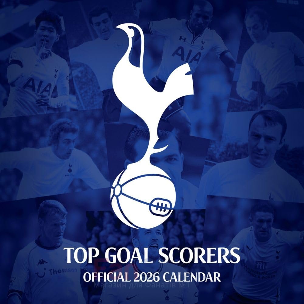 Оригинальный квадратный настенный календарь на 2026 год с изображением легендарных игроков ФК Тоттенхэм на каждой странице