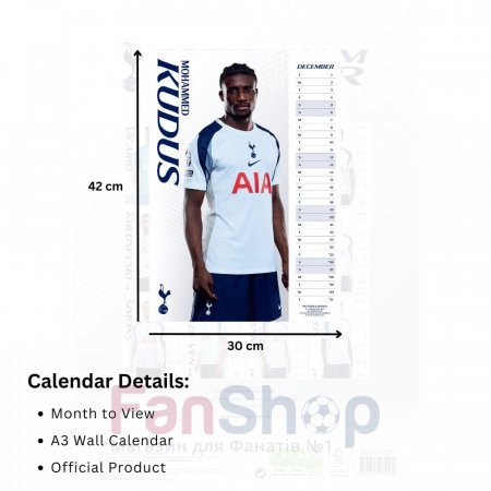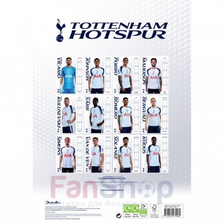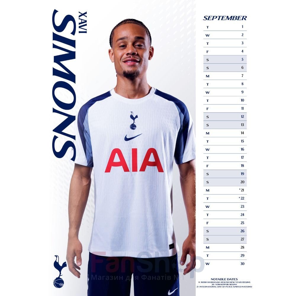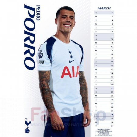 Оригинальный настенный перекидной календарь на 2026 год с изображением игроков ФК Тоттенхэм на каждой странице