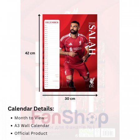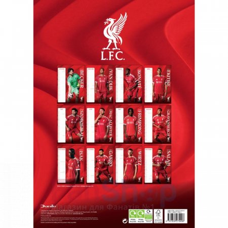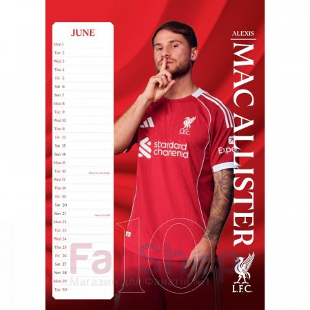 Оригинальный настенный перекидной календарь на 2026 год с изображением игроков ФК Ливерпуль на каждой странице