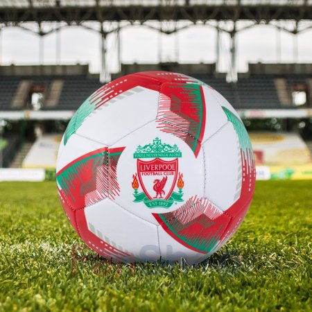 Оригинальный синтетический футбольный мяч украшен символикой футбольного клуба Ливерпуль Сшит машинным швом из 32 панелей, прочная резиновая литая камера Размер 5 (стандартный футбольный мяч) |