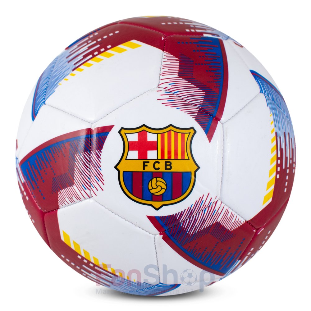 Оригинальный синтетический футбольный мяч украшен символикой футбольного клуба Барселона Сшит машинным швом из 32 панелей, прочная резиновая литая камера Размер 5 (стандартный футбольный мяч) |