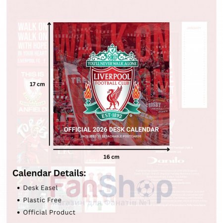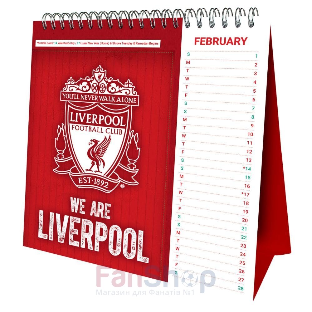 Оригинальный настольный перекидной календарь ФК Ливерпуль на 2026 год