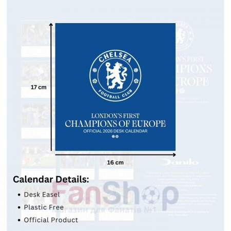 Официальный лицензированный продукт! Покупая официальный товар вы способствуете развитию данного футбольного клуба Голограмма Настольный календарь 2026 ФК Челси