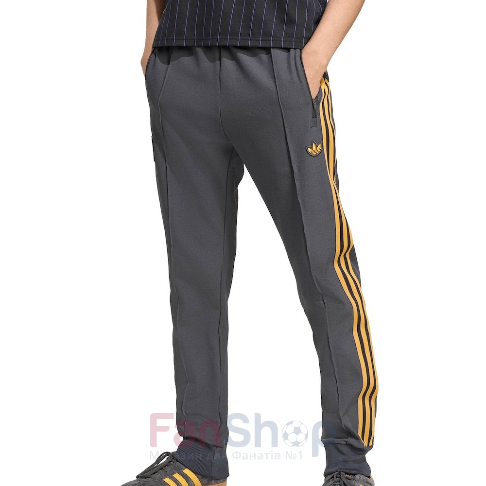 Спортивные штаны adidas Originals Icons Pants ФК Манчестер Юнайтед  Оригинальные спортивные штаны adidas Originals с символикой футбольного клуба Манчестер Юнайтед Модель в стиле 1980х с эластичным поясом, боковые карманы на молнии Штанины имеют слегка зауженную форму и эластичные манжеты на щиколотках По бокам нашивка эмблемы клуба и логотипа Adidas Материал: 100% переработаный полиэстер