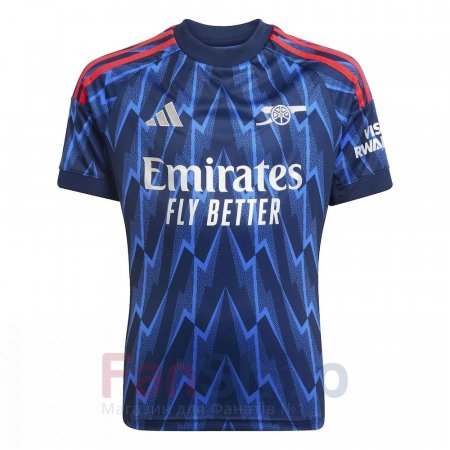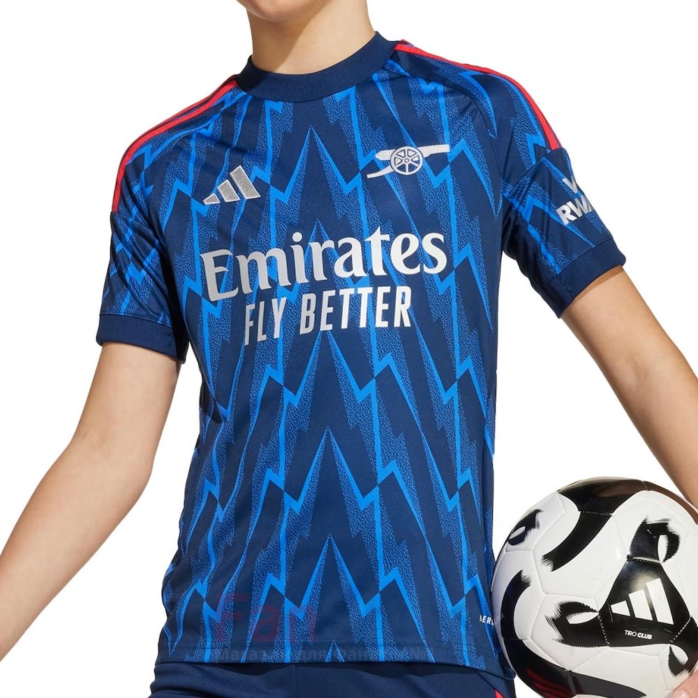 Оригинальная детская игровая футболка выездного комплекта формы ФК Арсенал сезона 2025-26