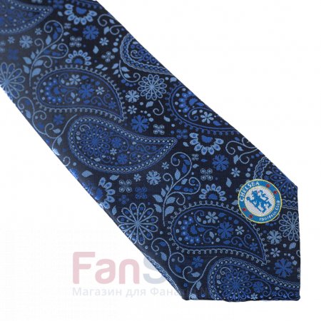 Оригинальный галстук уникальным дизайном украшен вышитой эмблемой футбольного клуба Челси