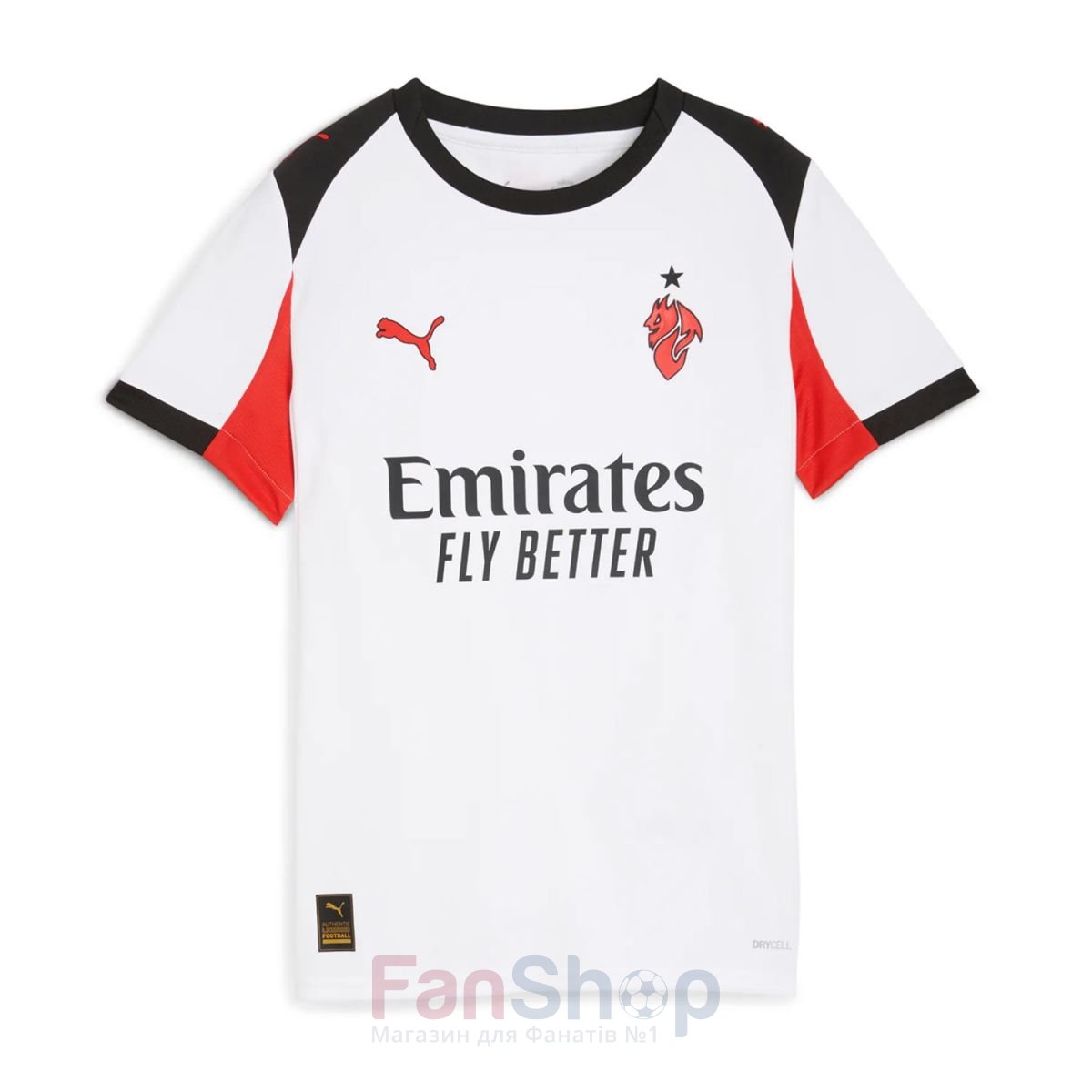 Оригинальная детская футболка гостевого(выездного) комплекта формы ФК Милан разработана компанией Puma на сезон 2025-26