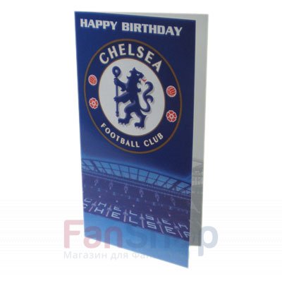 Поздравительная открытка с символикой Chelsea F.C. - отличный подарок ко Дню Рождения настоящего болельщика клуба!
