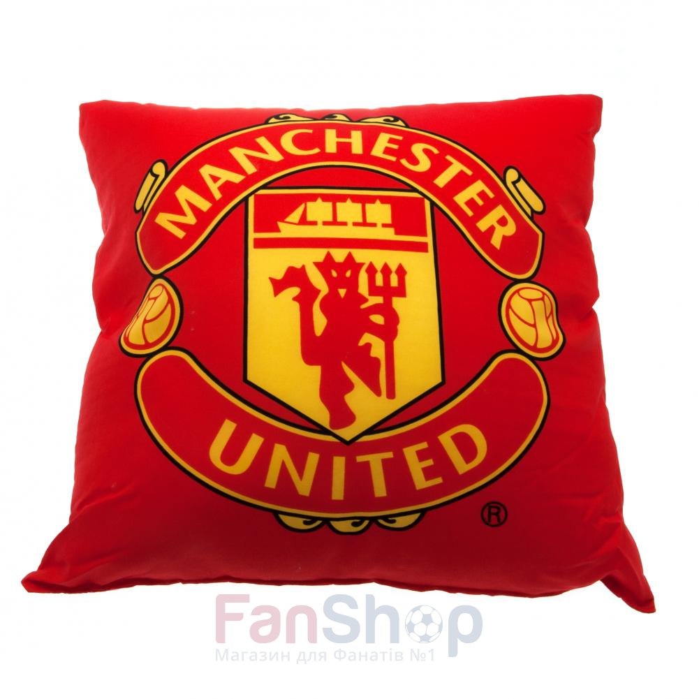 Прямоугольная подушка с символикой футбольного клуба Манчестер Юнайтед размеры приблизительно 40 см х 40 см