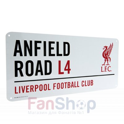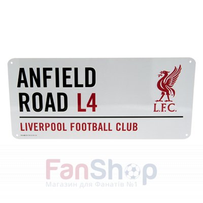 Металлическая уличная табличка с символикой и реквизитами клубного стадиона ФК Ливерпуль