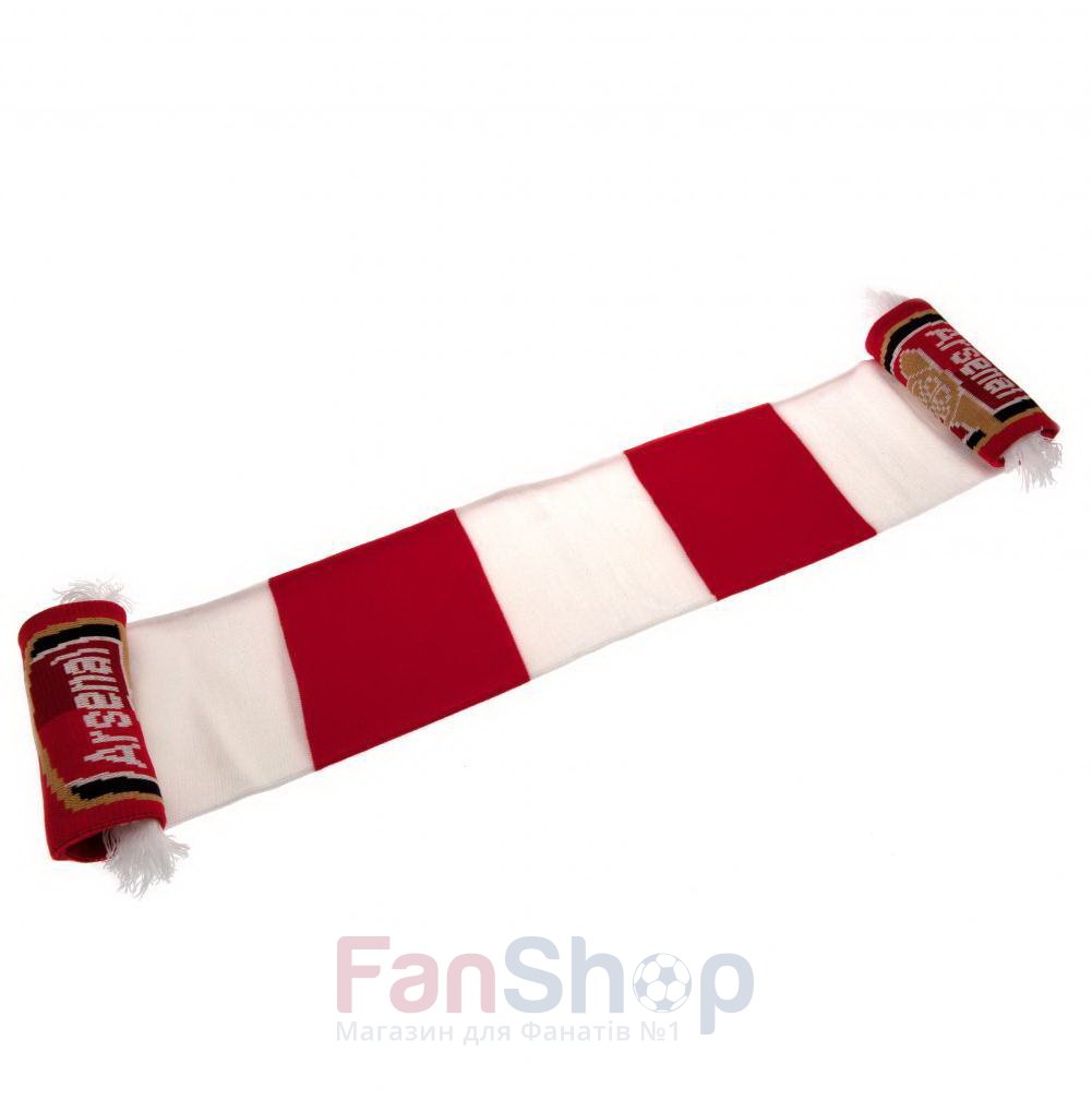 Оригинальный шарфик украшен вышитой символикой футбольного клуба Арсенал