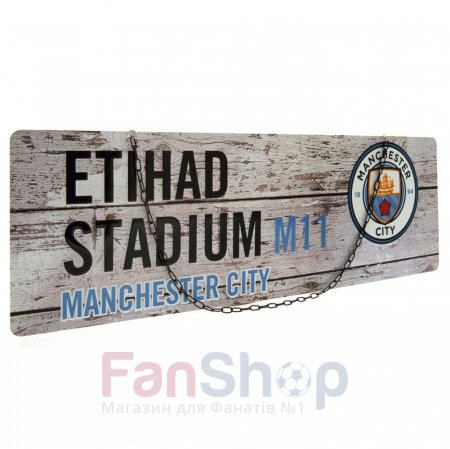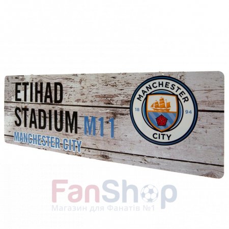 Металева вулична табличка з реквізитами клубного стадіону Манчестер Сіті