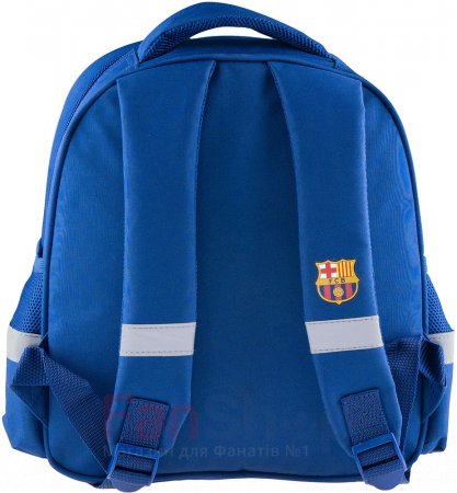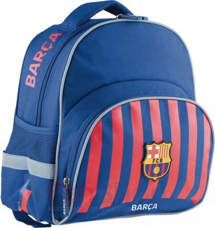 Оригінальний дитячий рюкзак прикрашений символікою футбольного клубу Барселона Оснащений ергономічною спинкою з регульованими S-подібними плечовими ременями Основне відділення на блискавці, передня кишеня для дрібних речей, дві бічні сітчасті кишені Якісна фурнітура з каучуковими бігунцями, міцна ручка для перенесення Світловідбиваючі смужки забезпечують безпеку на дорозі в темну пору доби Розміри рюкзака: 26 x 30 x 15, виготовлений з якісного зносостійкого поліестеру 300D x 300D Ідеально підходить для дошкільного віку!