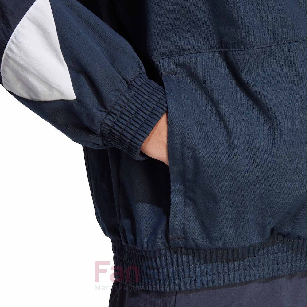 Оригінальна куртка adidas серії Icon із символікою футбольного клубу Реал Мадрид Модель вільного крою з коміром-стійкою на блискавці Виконана у ретроспективних кольорах, сітчаста підкладка М'які еластичні манжети на рукавах та попереку Кенгуру-кишеню на блискавці для рук або дрібних речей Емблема клубу та логотип виробника вишиті Матеріал: 100% перероблений поліестер, у виготовленні цієї моделі використані технології, що заощаджують природні ресурси Ця ветровка виконана в стилі оверсайз у стилі 90-х Якщо ви віддаєте перевагу більш щільній посадці, ми рекомендуємо вибрати на розмір менше