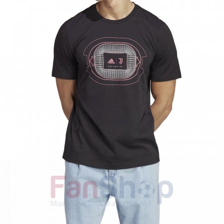 Оригінальна бавовняна футболка Adidas із символікою футбольного клубу Ювентус На грудях принт у вигляді стадіону Стадіон Альянц Вільного крою, виготовлена з м'якої бавовни, рифлений круглий комір. Матеріал: 100% cotton