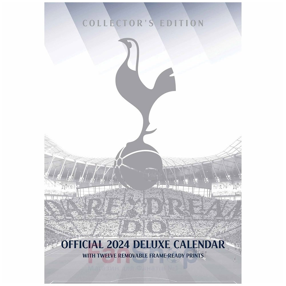 Оригінальний настінний перекидний календар на 2024 рік серії Deluxe з зображенням гравців і символіки ФК Тоттенгем на кожній сторінці Складається з 12-ти листів-ілюстрацій формату А3 з перфорацією з боків для легкого відділення і розміщення під рамку Листи скріплені металевою спіраллю, зверху пластина для кріплення Розмір: А3 ~ 42cm x 30cm |