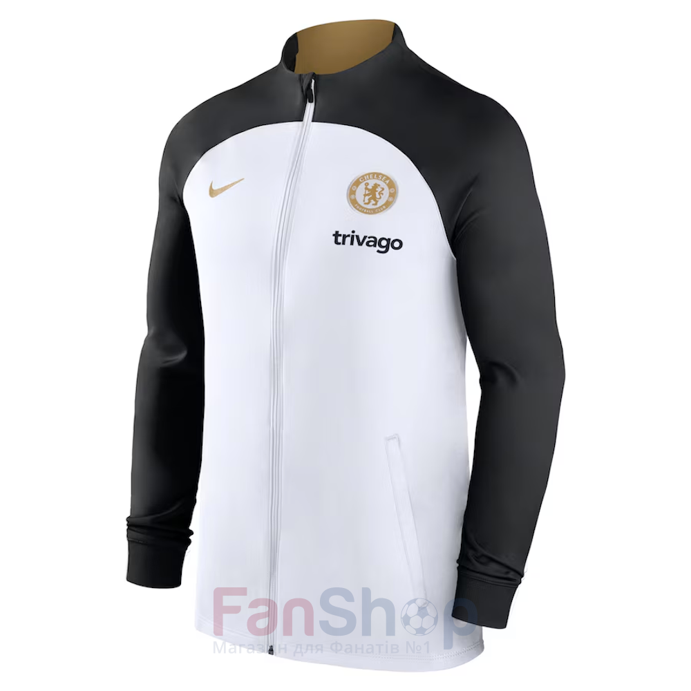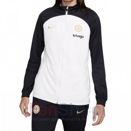 Оригінальна спортивна кофта-олімпійка Nike колекції футбольного клубу Челсі Модель з довгим рукавом застібається на повній блискавки Еластичний комір, на грудях вишита емблема клубу і логотип виробника Вироблено з легкого високотехнологічного матеріалу за технологією Nike DRI-FIT Еластичний трикотажний матеріал забезпечує щільну посадку і природну свободу рухів