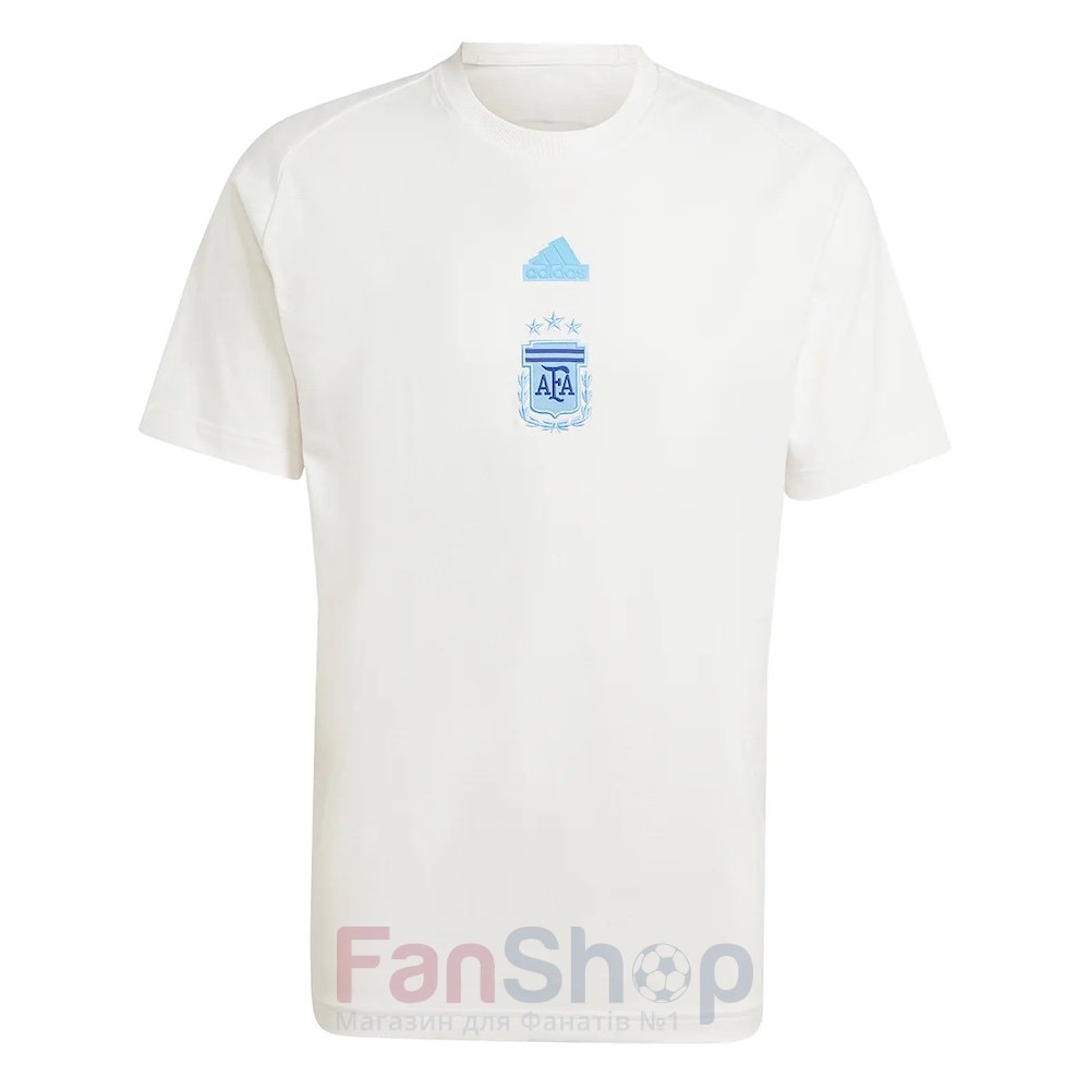 Оригінальна бавовняна футболка Adidas із символікою збірної Аргентини Емблема збірної та логотип виробника на грудях Виготовлена з м'якої приємної бавовни, рифлений круглий комір Матеріал: 100% бавовна