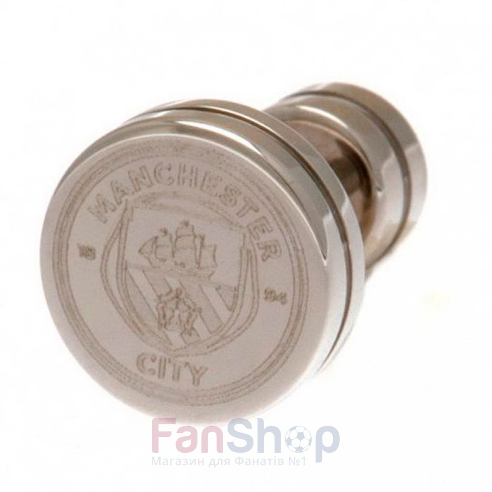 Сталева сережка з вигравіруваною емблемою футбольного клубу Манчестер Сіті