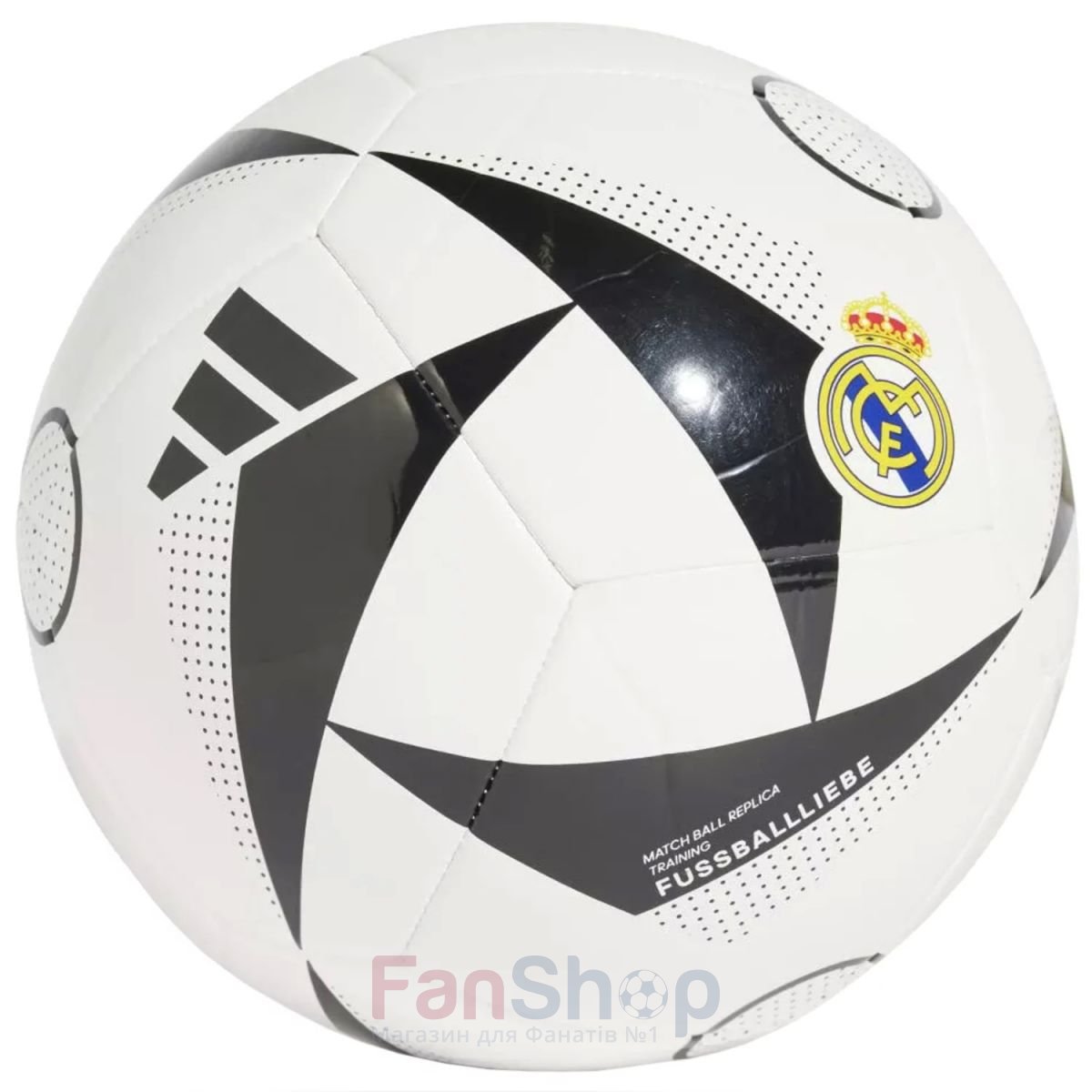 Оригінальний футбольний м'яч adidas Fussballliebe із символікою ФК Реал Мадрид Поверхня з поліуретану, міцна гумова камера Зшитий машинним швом