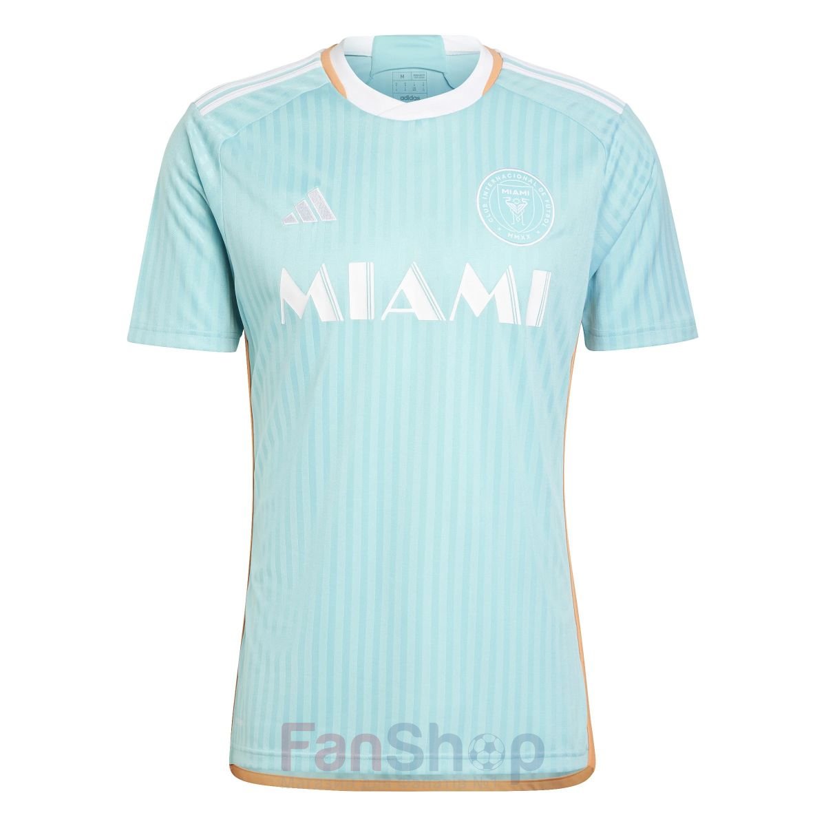 Оригінальна ігрова футболка третього комплекту форми ФК Інтер Маямі сезону 2024-25 Виконана в мятному кольорі з білими та помаранчевими вставками на честь культового Оранжевого Боула(Orange Bowl) Округлий білий еластичний комір, три білі смужки на плечах та вставки з боків На грудях нашивка емблеми та назви клубу, логотипу adidas, ззаду принт логотипу спонсора Матеріал: сітчаста перфорована тканина, що відводить вологу, з технологією AEROREADY Вироблено на фабриці adidas зі 100% переробленого поліестеру з метою збереження ресурсів та зменшення шкідливих викидів в атмосферу