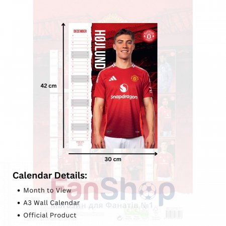 Офіційний ліцензований продукт! Купуючи офіційний товар ви робите внесок в розвиток даного футбольного клубу Голограмма Настінний календар 2025 ФК Манчестер Юнайтед