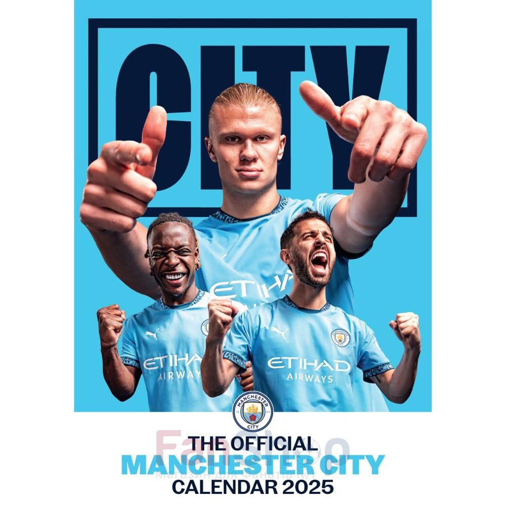 Настінний перекидний календар на 2026 рік з зображенням гравців ФК Манчестер Сіті на кожній сторінці