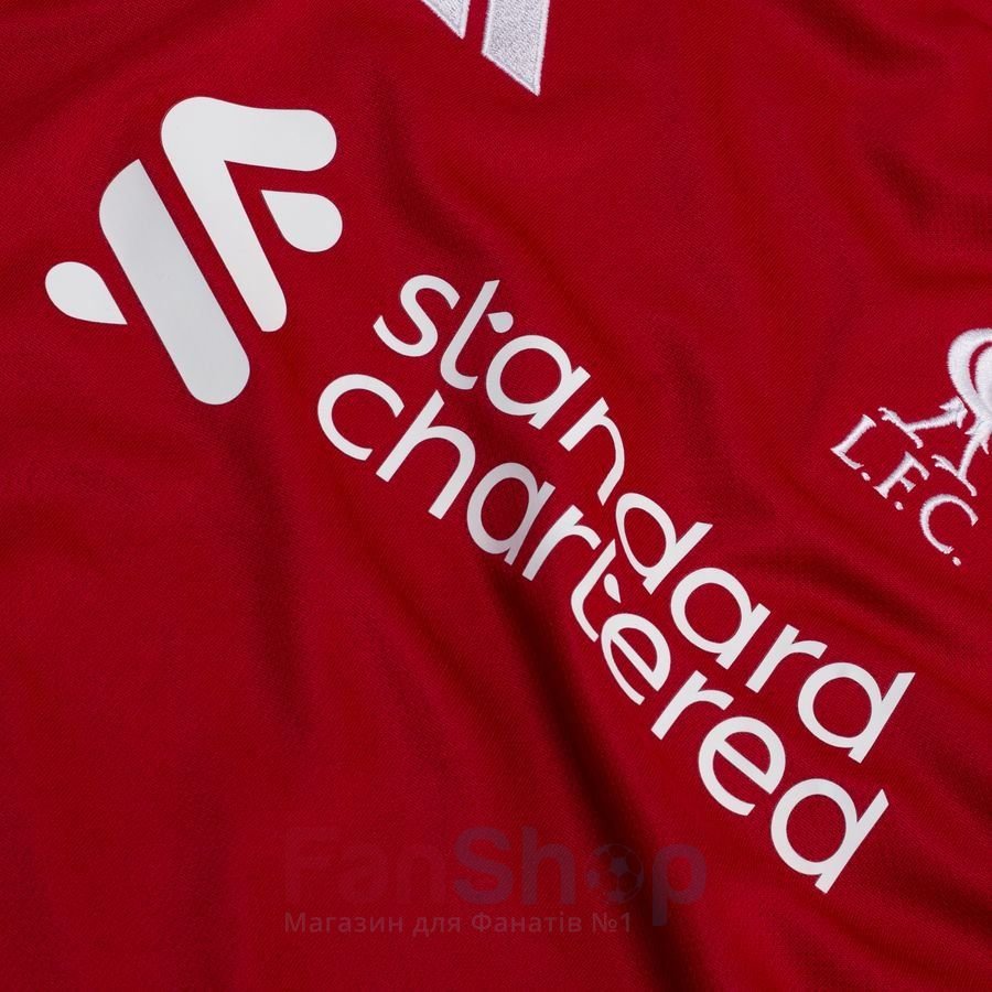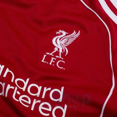 На грудях нашивка клубного лого Liverbird та логотипу виробника, логотипи спонсорів нанесені термопринтом