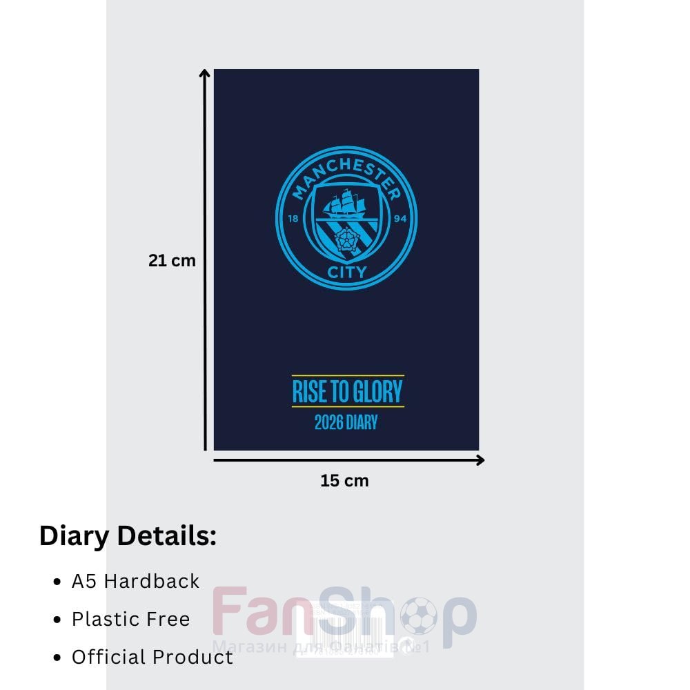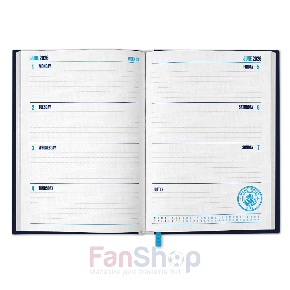 Оригінальний датований планер-щоденник на 2026 рік прикрашений символікою футбольного клубу Манчестер Сіті