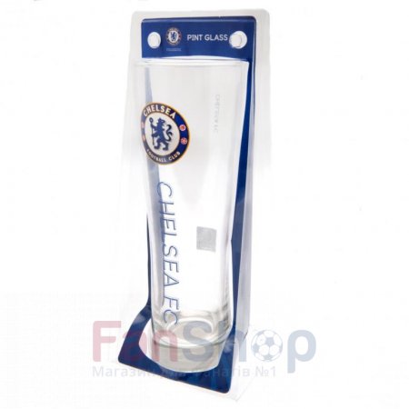 Високий пивний келих з кольоровою емблемою і символікою ФК Челсі