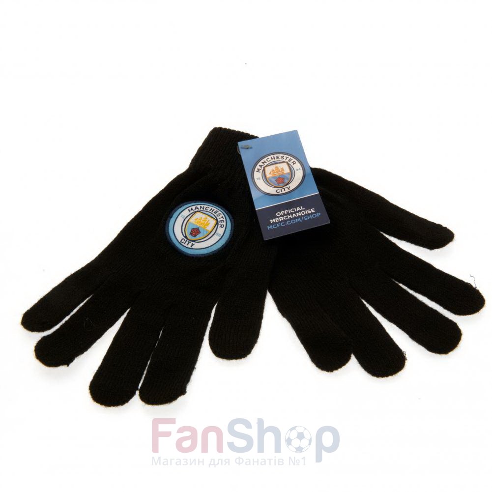 Оригінальні трикотажні рукавички з вишитим логотипом Манчестер Сіті