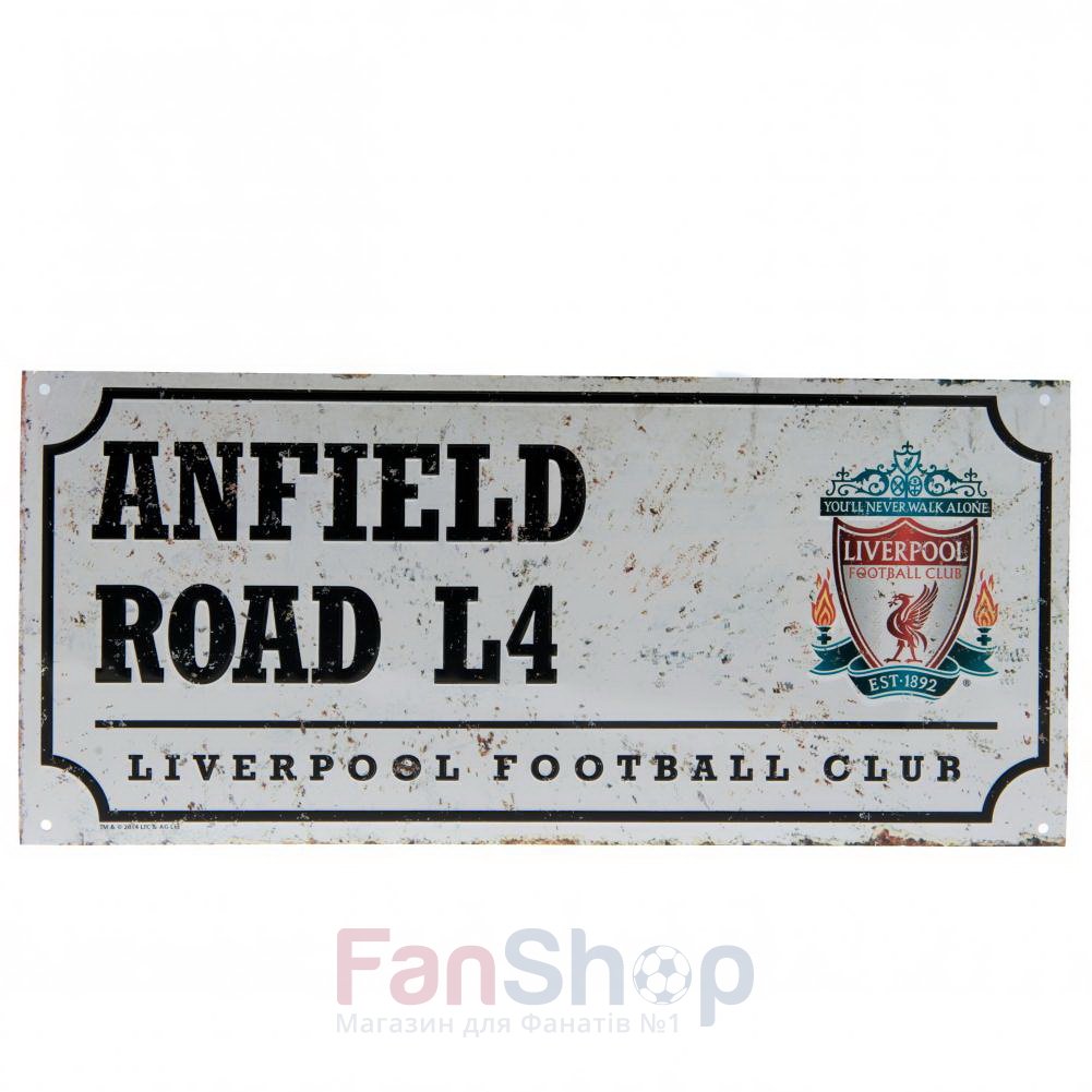 Металева вулична табличка виконана в ретро стилі з реквізитами клубного стадіону ФК Ліверпуль
